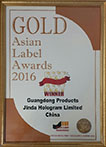 Gold Award of "Combination Printing" of 14th Asian Label Awards 2016